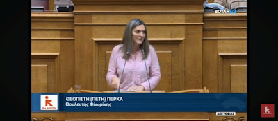 Φλώρινας ξεκίνησε την ομιλία της ως ειδική αγορήτρια, παρατηρώντας ότι η Ελλάδα